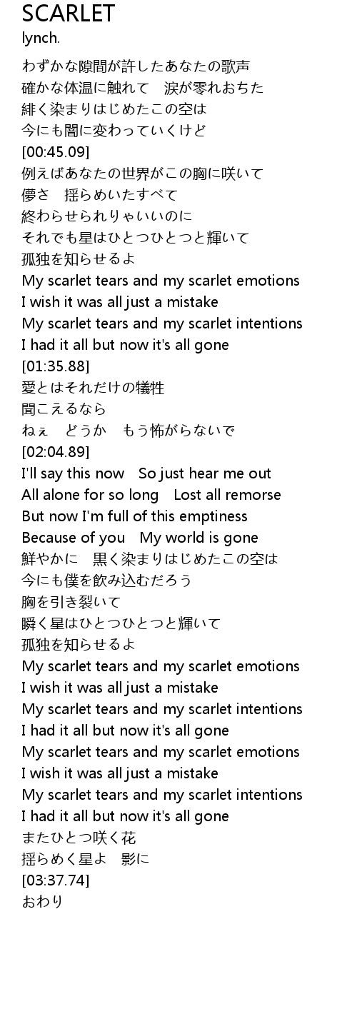 | [02:57.37] | My scarlet tears and my scarlet intentions |