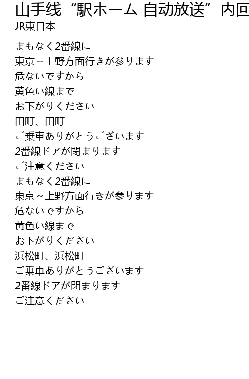 | Song | 山手线“駅ホーム 自动放送”内回り 田町・浜松町 |