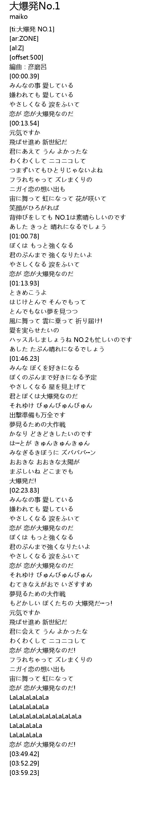| [03:21.63] | 恋が 恋が大爆発なのだ! |