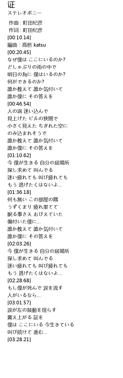 | [03:15.21] | 僕は ここにいる 今生きている |