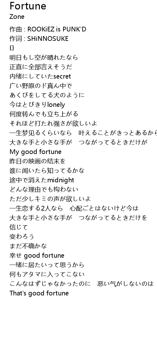 | 一生恋する2人なら 心配ごとはないけど今は | |
