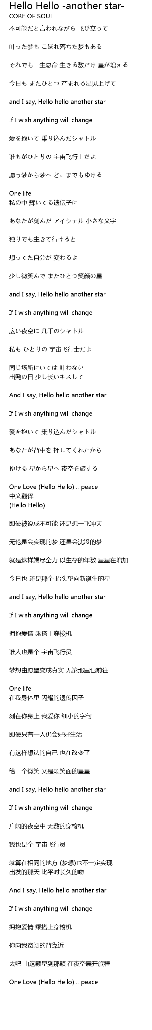 | Song | Hello Hello -another star- |
