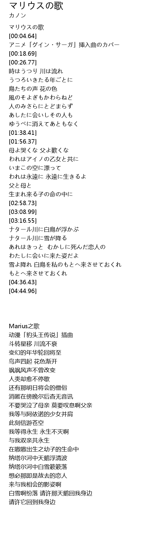 | [04:09.50] | 雪よ降れ 白鳥を私のもとへ来させておくれ |