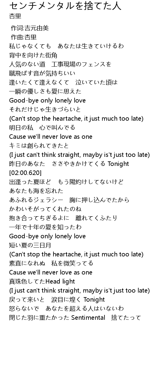 | [03:45.215] | 戻って来いと 涙目に煌く Tonight |