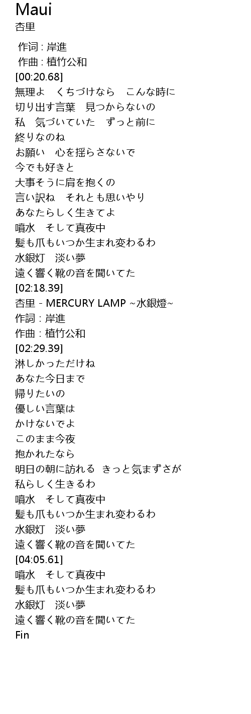 | [02:20.39] | 杏里 - MERCURY LAMP ~水銀燈~ |