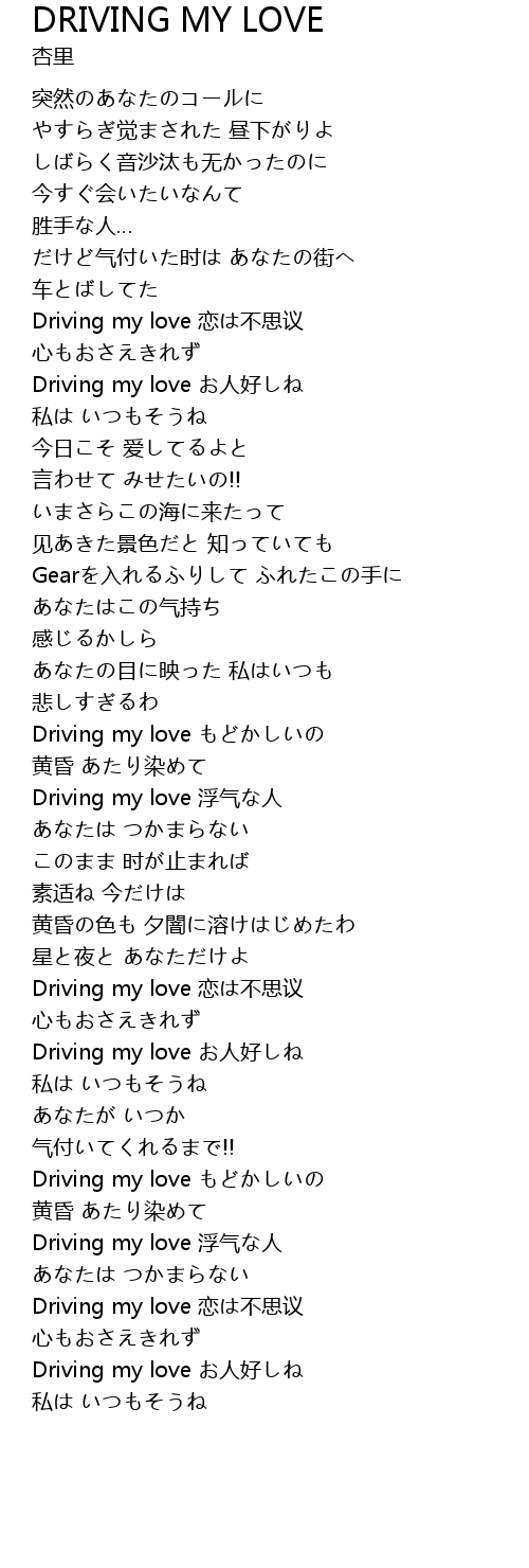 | [04:22.70] | Driving my love 恋は不思议 |