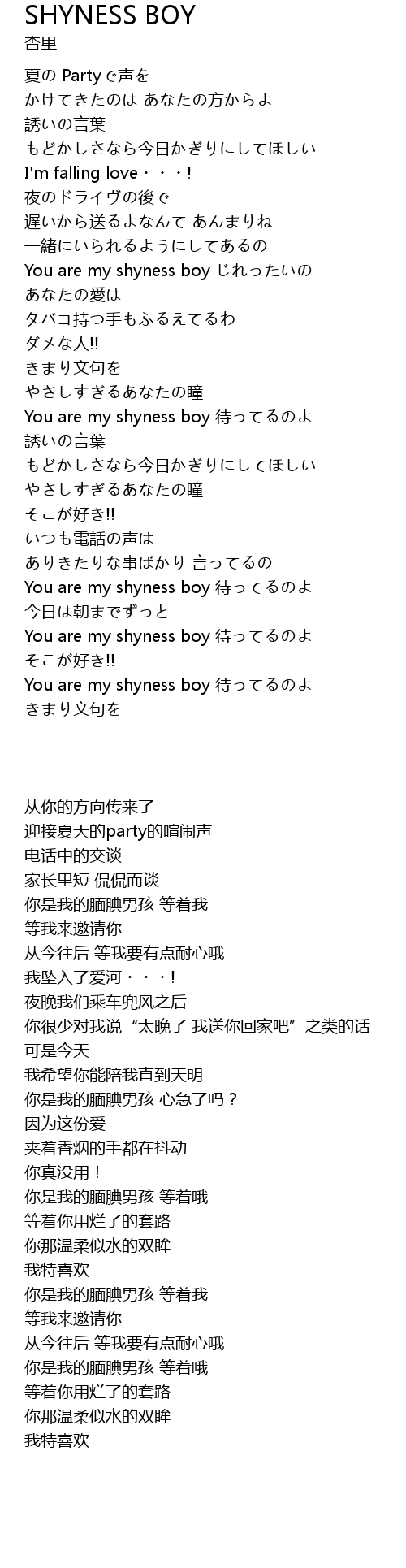 | [00:48.66] | You are my shyness boy 待ってるのよ |