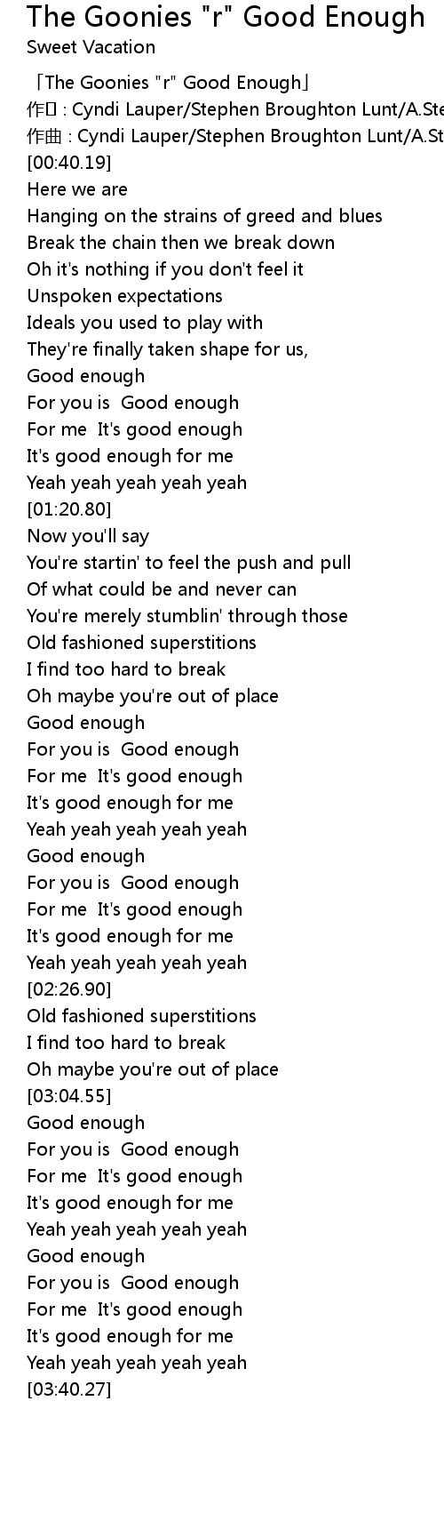 | [00:01.19] | 「The Goonies "r" Good Enough」 |