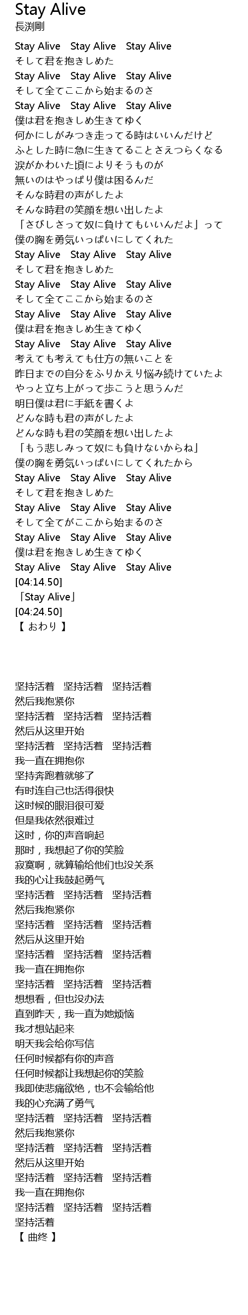 | [04:16.50] | 「Stay Alive」 |
