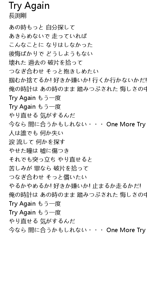 | 今なら 間に合うかもしれない・・・ One More Try |