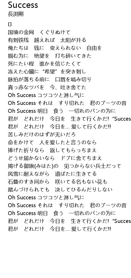 | Oh Success 明日 食う 一切れのパンの为に | |