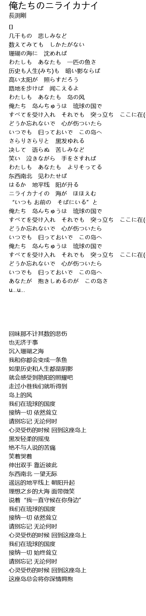 | あなたが 抱きしめるのが この岛さ | |