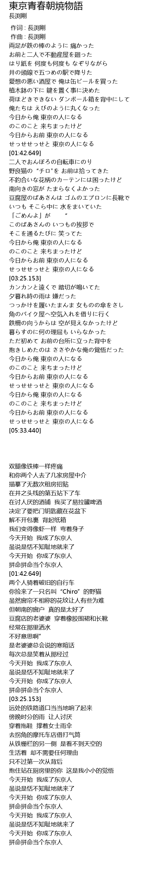 | [03:18.622] | せっせせっせと 東京の人になる |