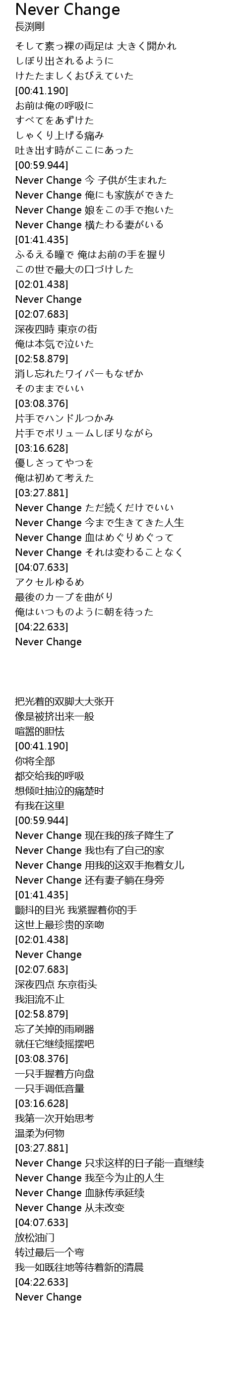 | [03:41.384] | Never Change 今まで生きてきた人生 |