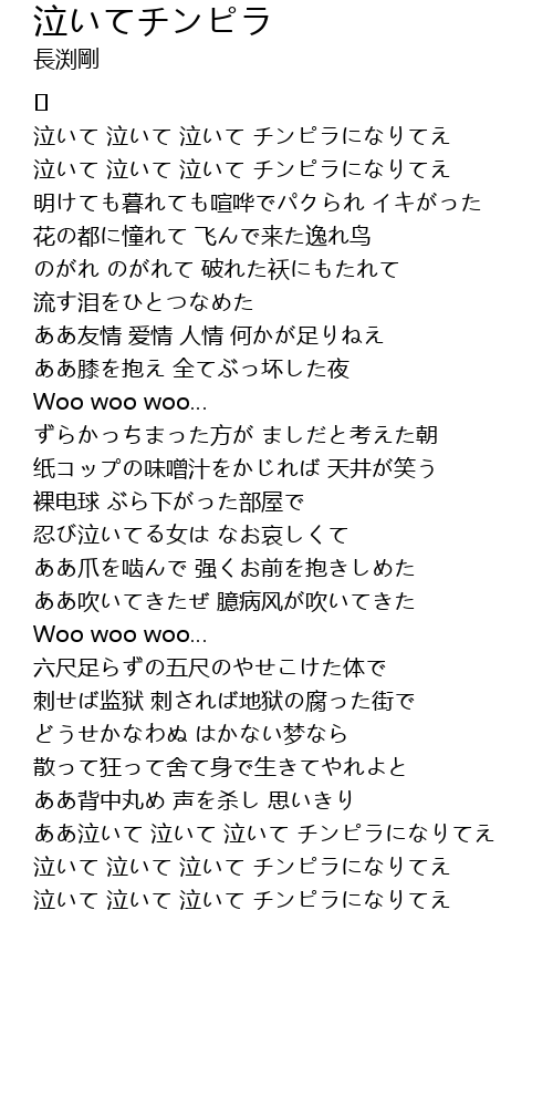| 泣いて 泣いて 泣いて チンピラになりてえ |