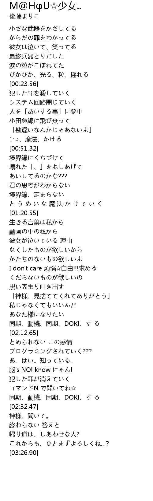 | [01:58.63] | 「神様、見捨ててくれてありがとう」 |