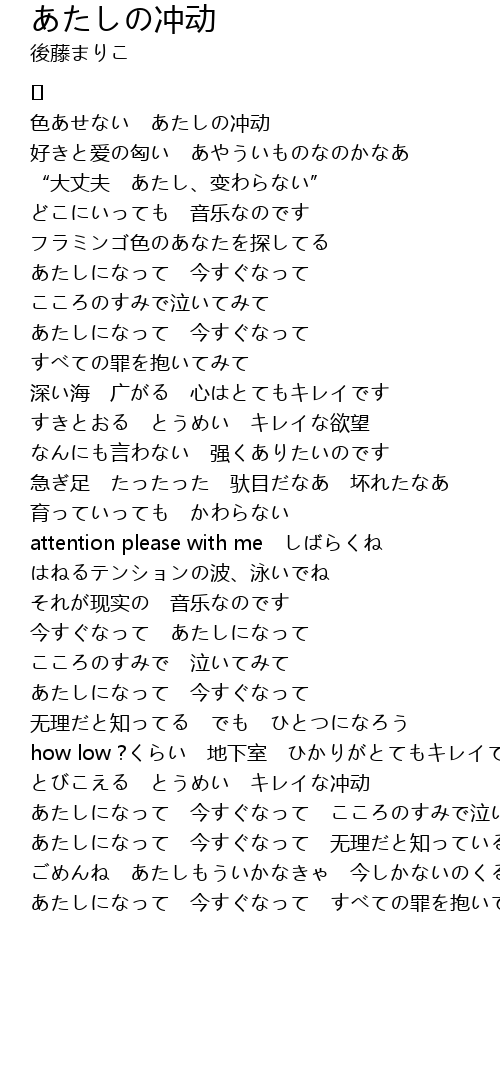 | ごめんね あたしもういかなきゃ 今しかないのくるしくないよ | |