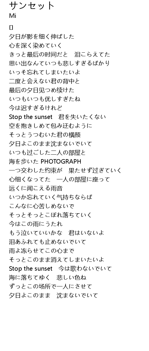 | Stop the sunset 今は歌わないでいて | |
