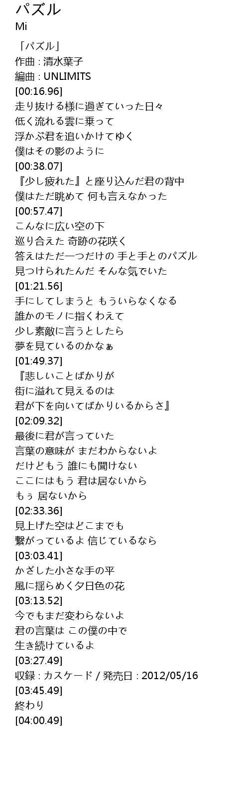 | [03:40.49] | 収録∶カスケード/発売日∶2012/05/16 |