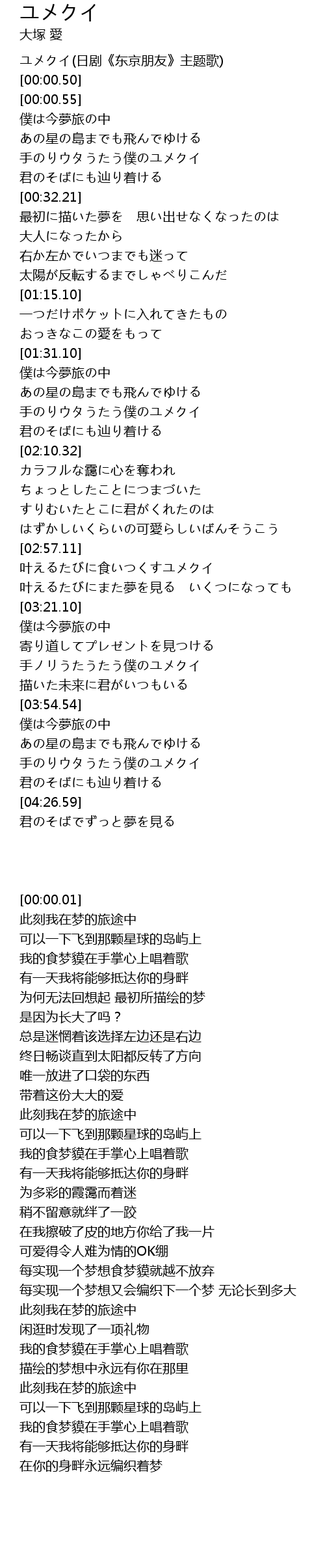 | [00:00.01] | ユメクイ(日剧《东京朋友》主题歌) |