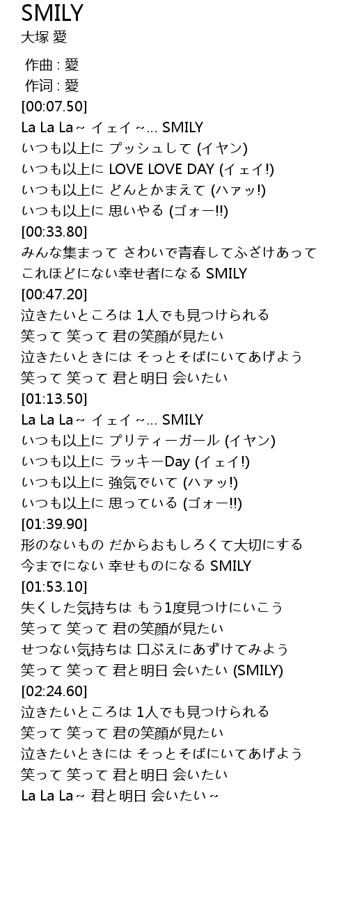 | [00:07.54] | La La La~ イェイ~… SMILY |