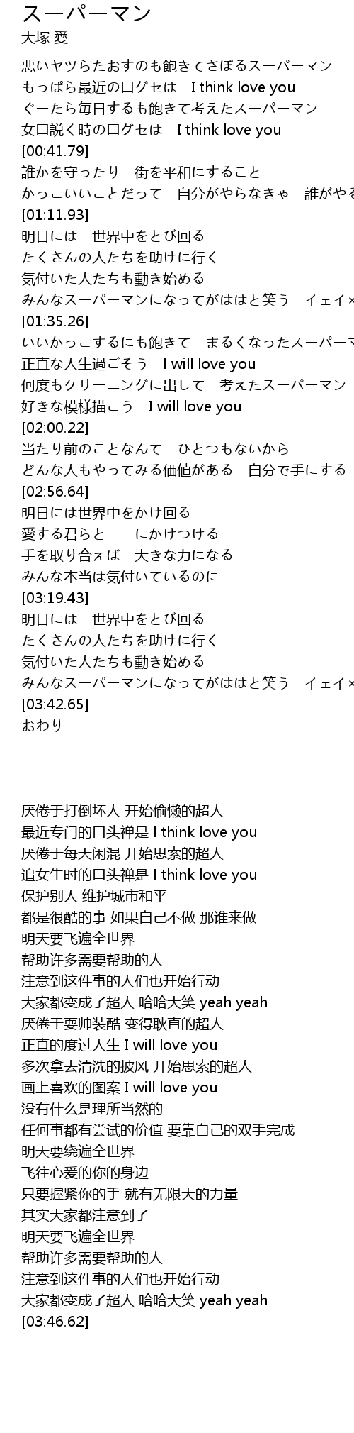 | [01:49.18] | 何度もクリーニングに出して 考えたスーパーマン |