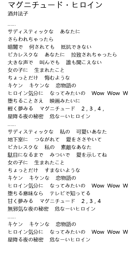 | [02:18:50] | ヒロイン気分に なってみたいの Wow Wow Wow |