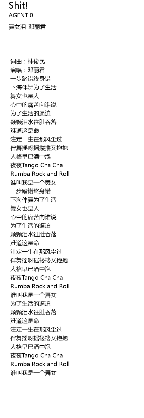 | [00:57.19] | 夜夜Tango Cha Cha |