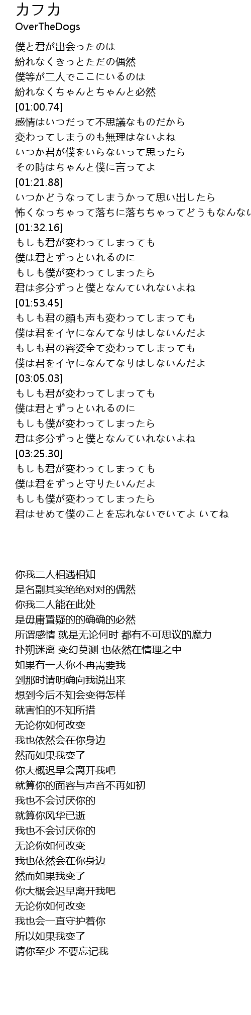 | [01:37.38] | 僕は君とずっといれるのに |