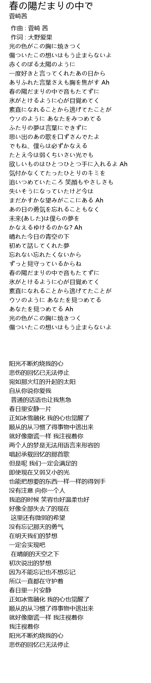 | [03:46.52] | 春の陽だまりの中で音もたてずに |