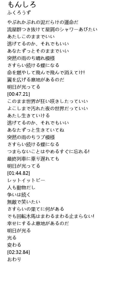 | [02:14.42] | でも回転木馬はまわるまわる止まらない! |