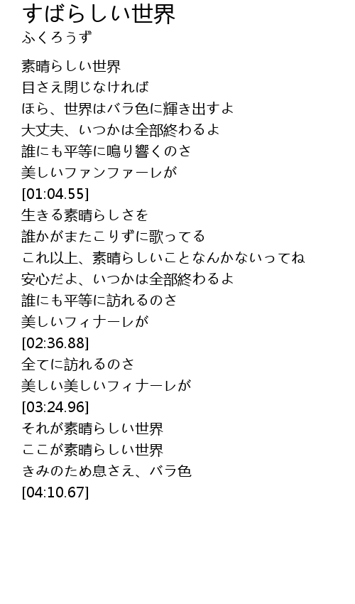 | [00:13.51] | ほら、世界はバラ色に輝き出すよ |