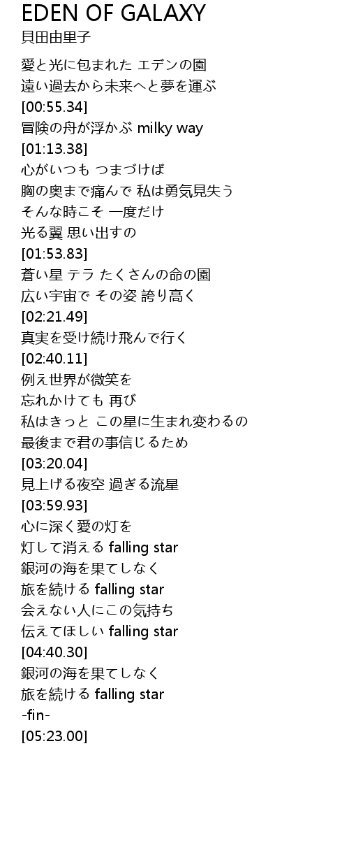 | [02:57.20] | 私はきっと この星に生まれ変わるの |
