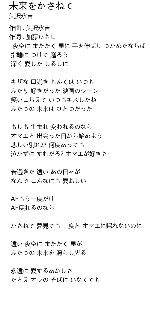 | Song | 未来をかさねて |