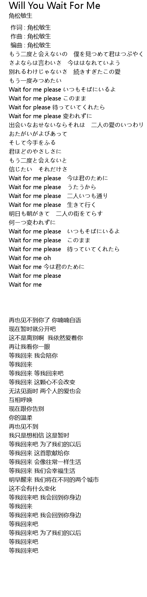 | [03:47.02] | Wait for me 今は君のために |