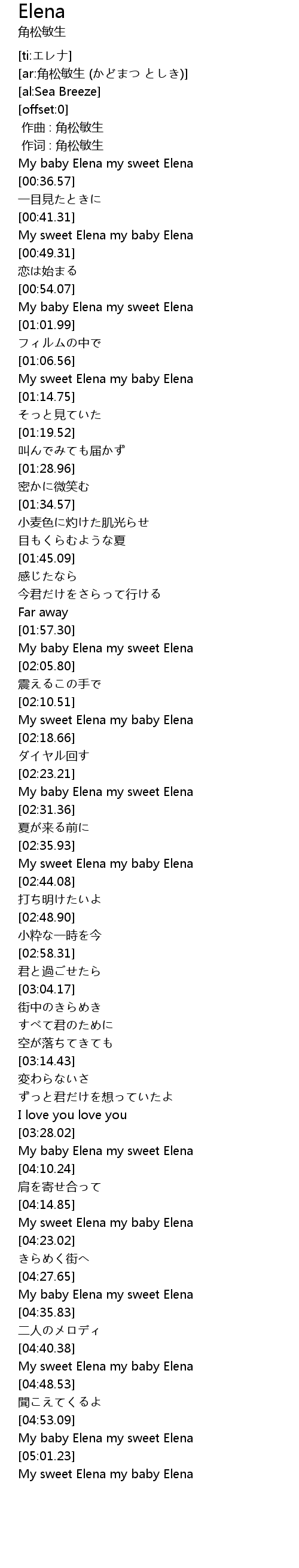 | [04:57.67] | My baby Elena my sweet Elena |