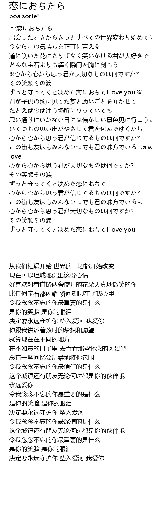 | [01:13.612] | ずっと守ってくと决めた恋におちてI love you ※ |