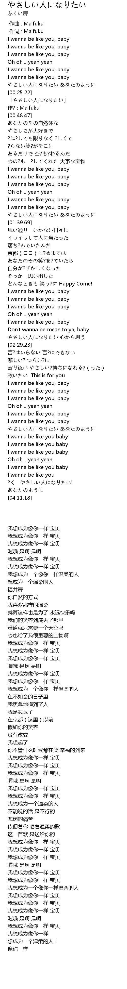 | [01:33.56] | やさしい人になりたい あなたのように |