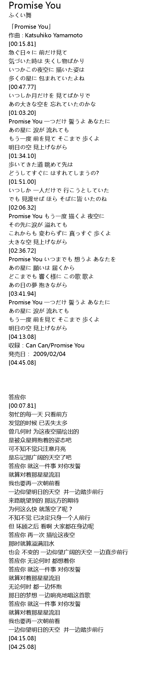| [03:13.04] | Promise You いつまでも 想うよ あなたを |