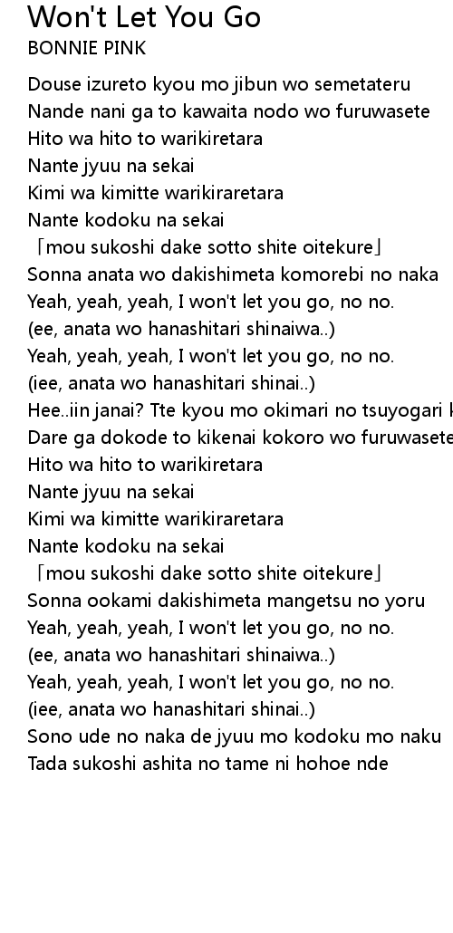 | Song | Won't Let You Go |