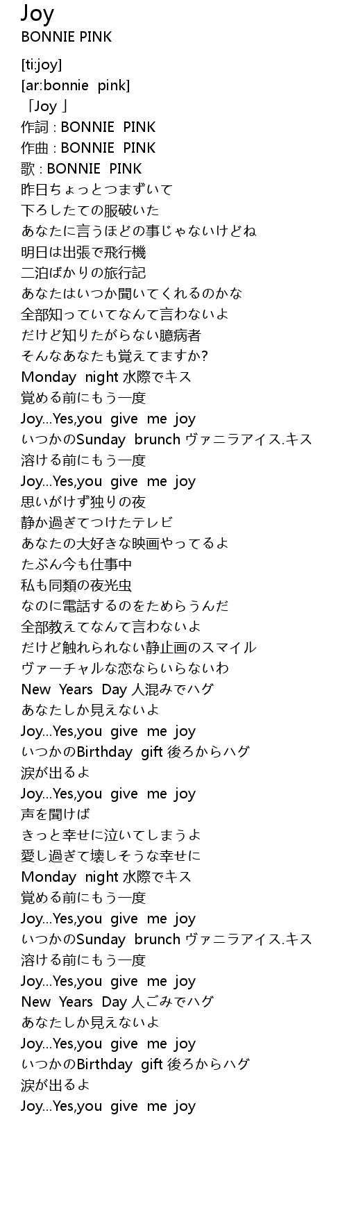 | [00:05.624] | 作詞∶BONNIE PINK |
