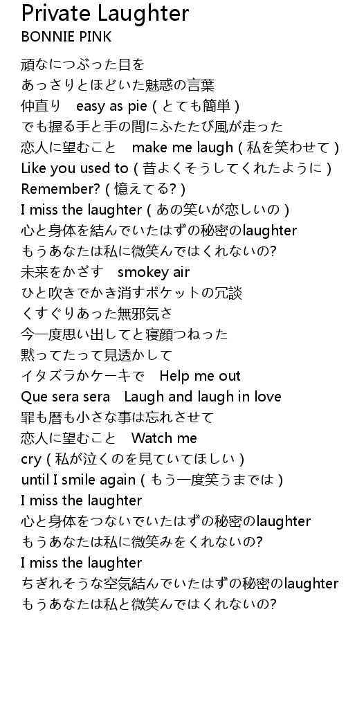 | [00:29.00] | 恋人に望むこと make me laugh(私を笑わせて) |
