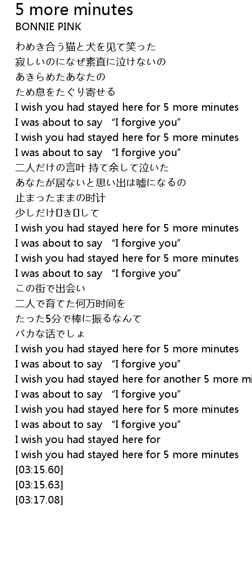 | [00:54.29] | I wish you had stayed here for 5 more minutes |