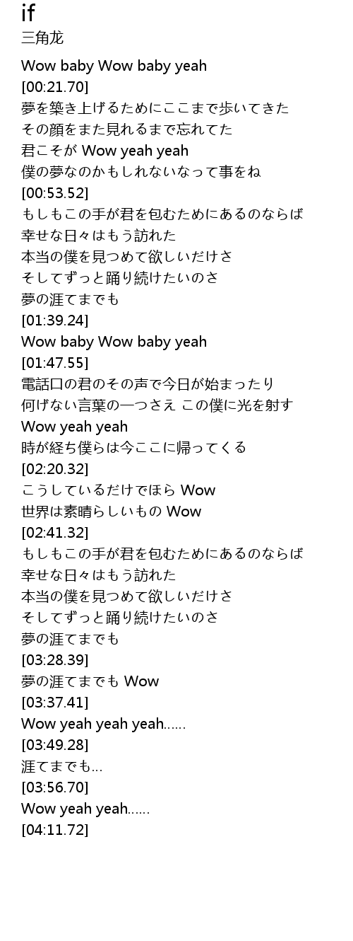 | [02:31.43] | 世界は素晴らしいもの Wow |