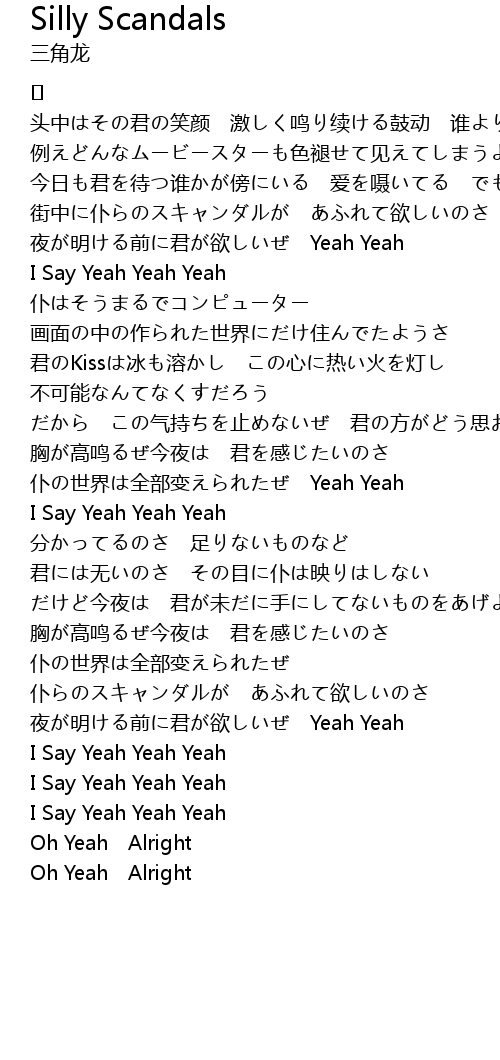 | 夜が明ける前に君が欲しいぜ Yeah Yeah | |