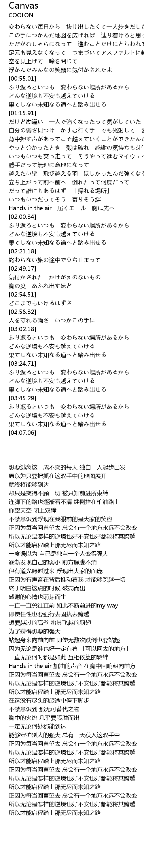 | [01:33.24] | やっと分かったとき 殻は破れ 感謝の気持ちも芽生え |