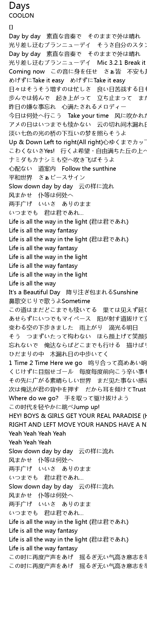 | Slow down day by day 云の样に流れ | |