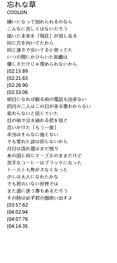 | [03:07.03] | 苦手なコーヒーはブラックになった |