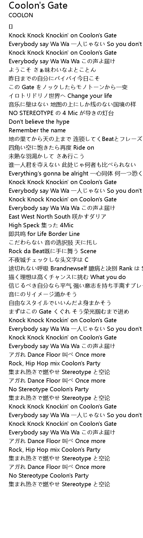 | Knock Knock Knockin' on Coolon' s Gate | |