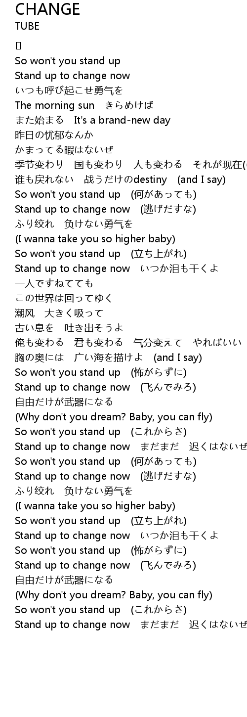 | Stand up to change now まだまだ 迟くはないぜ |